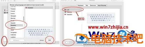 5、注意在设置默认输入法时,只有添加Hawaiian 输入法(夏威夷输入法)才能把默认的U.S输入法删除掉,因为Hawaiian 输入法与U.S输入法用法是一样的。