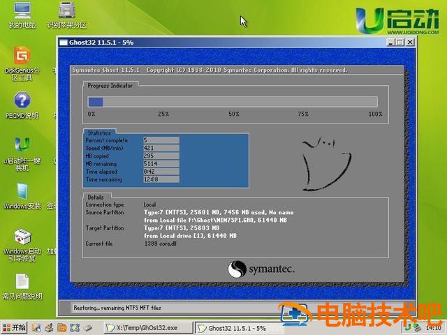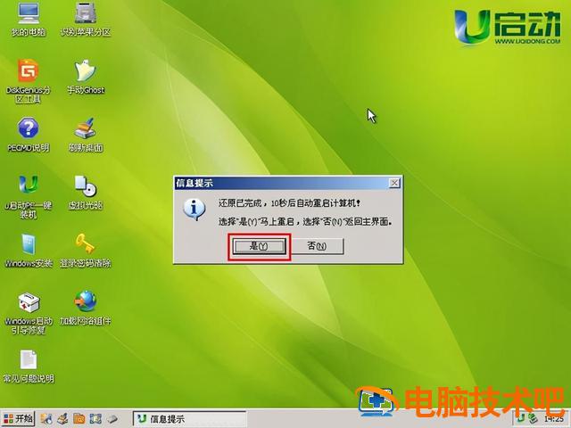 还原后,会弹出信息提示窗口,此时点击是(Y)按钮,自动重启计算机。如果你没有时间点击是(Y)按钮,只需等待10秒,电脑就会自动重启。当计算机重启时,系统安装的其他过程将自动完成。我们只需要耐心等待安装完成,直到进入计算机桌面!如下图所示: