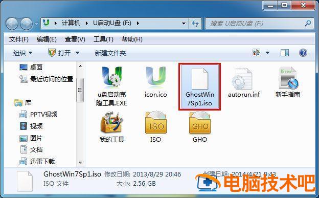 一、将下载好的Ghost win7系统镜像文件复制到u盘中,如下图所示即为小编复制到u盘内的镜像文件。