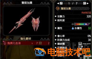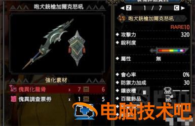 大名盾蟹的铳枪,通常形8,320面板自带短白,送30防御,1个2级孔,1个3级百龙孔