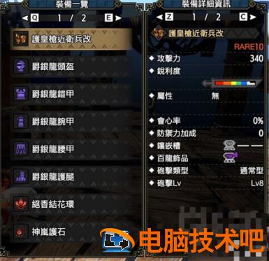 矿石系到最后的近卫铳枪,通常形8,340面板自带短白,1个2级孔,1个3级百龙孔