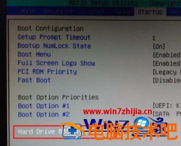 5、如果是以下界面,切换到Boot或Startup,选择Hard Drive BBS Priorities回车;