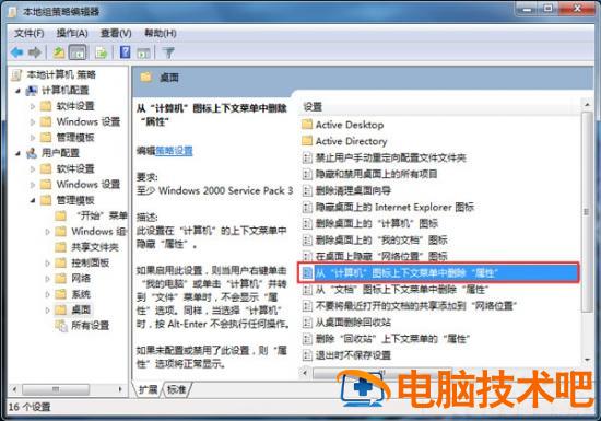 在桌面中找到“从计算机图标上下文菜单中删除属性”的选项,双击打开。