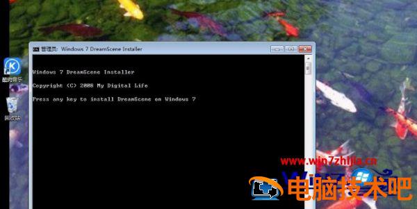 2、与其说是一个软件,不如说Windows7-DreamScene是一个补丁,我们右击选择用管理员身份运行,在界面中随意按键,过一会界面消失,说明补丁已经安装完成。在桌面上右击,可以看到如下图所示的选项。