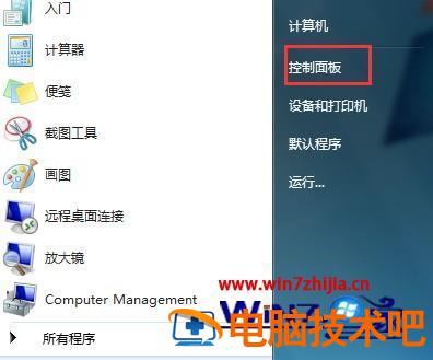 1、点击屏幕左下角开始图标,在弹出对话框中选择“控制面板”并打开