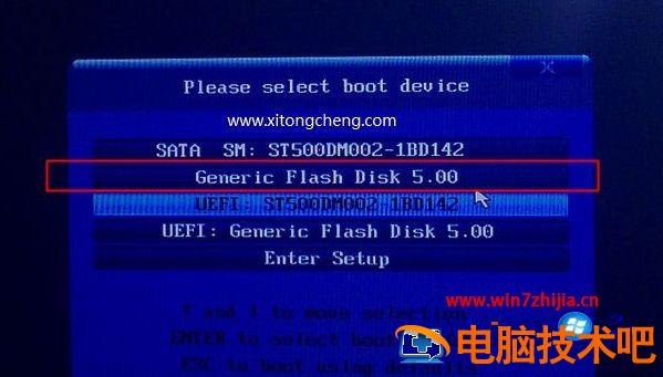 2、在需要装系统的电脑上插入U盘启动盘,重启过程中不停按F12或F11或Esc等启动快捷键调出启动菜单。选择识别到的U盘选项,一般是带有USB的选项,或者是U盘的品牌名称,比如Toshiba、Sandisk或者Generic Flash Disk。如果同时出现两个U盘项,选择不带uefi的项,表示在legacy模式下安装,选择之后按回车键;