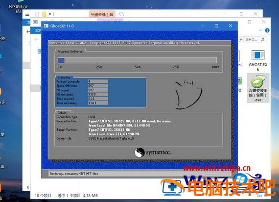 11、操作完成后自动重启,重启时拔出U盘,进入这个界面,执行win7系统组件、驱动安装、系统配置和激活过程;