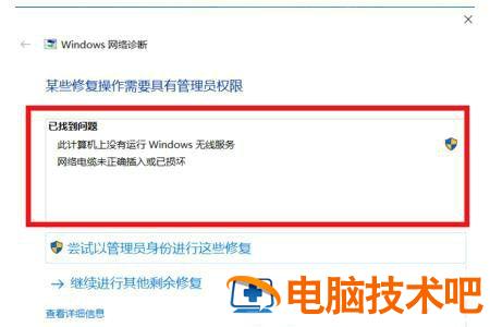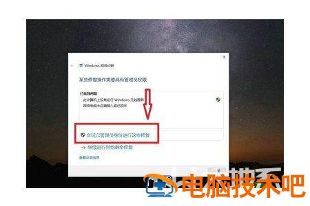 2、在网络诊断的结果中,点击【尝试以管理员身份进行这些修复】