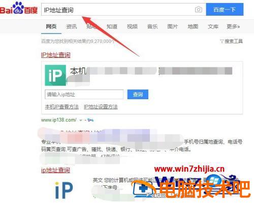 1、第一种方法很简单,我们可以直接在浏览器中搜索“IP地址查询”,就可以在下方的结果中看到自己电脑的IP地址以及所属地区了。