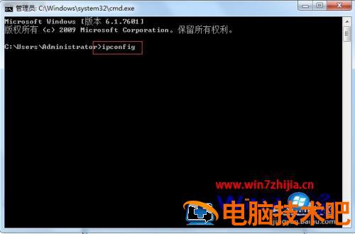 6、在输入完成“ipconfig”,并点击回车之后,就会出现我们的电脑IP地址了。