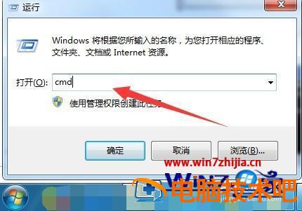 3、我们在打开“运行”命令之后,需要在运行对话框中输入“cmd”命令,然后点击确定就可以了。