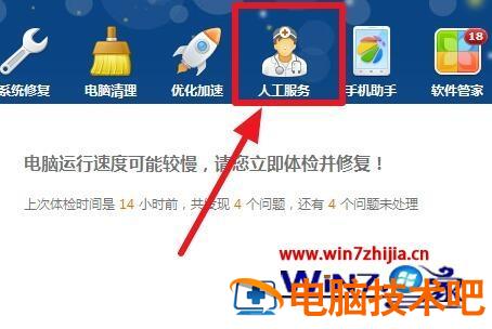 1、如果你的电脑有360安全卫士,也可以打开360安全卫士,然后点击【人工服务】。