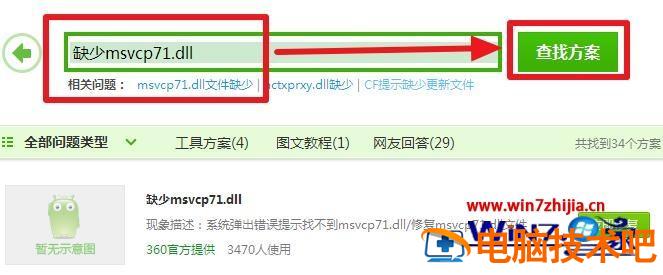 2、在查找方案中直接搜索你的问题,如图所示。