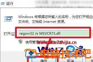 2、完成第一步后使用【win+R】打开【运行】,输入【regsvr32 /s MSVCR71.dll】,然后【确定】即可解决msvcp71.dll丢失问题。