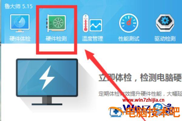 2,接着,在鲁大师软件的界面中点击“硬件检测”,点击打开。