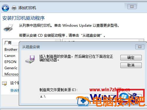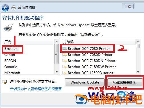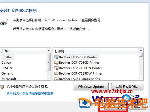8、在选项列表内先选打印机的厂商和打印机型号,然后点击“从磁盘安装”。
