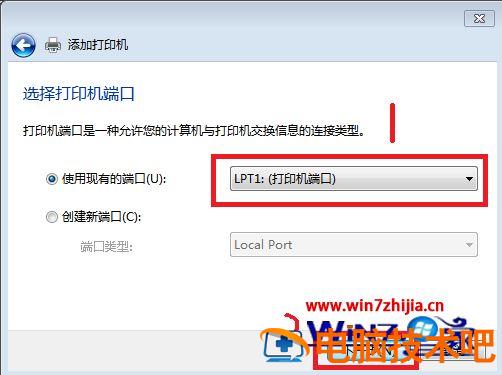 7、选择打印机的端口类型一般说明书上有,然后点击“下一步”。