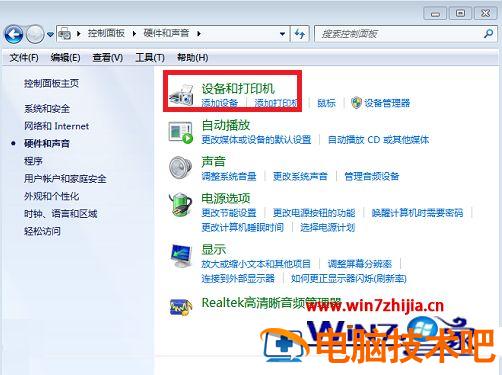 4、然后在弹出的对话框中选择“设备和打印机”,点击进入。