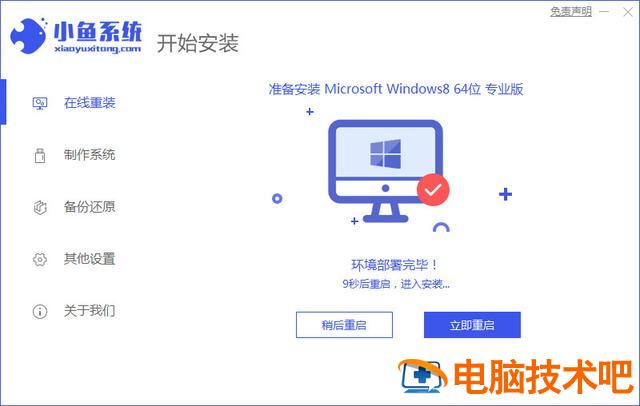 3、环境部署完成后点击立即重启重启电脑。