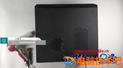 2、首先卸下机箱后盖,将风扇拆下,用毛刷小心对风扇进行清理。