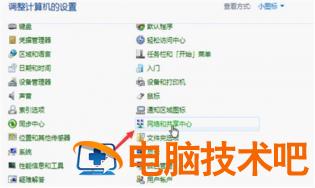 3、查看方式改为小图标,选择网络和共享中心。