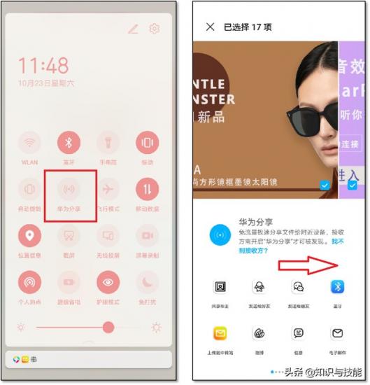 首先打开【华为分享】,选择要传输的照片和视频,点击右下角分享,然后选择相应的电脑,一键转到电脑上。