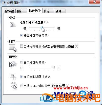 4、点击切换之指针选项,如图,点击拖动图示的小按钮,改变指针的灵敏度
