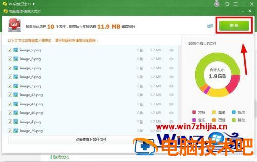 7、选择好要删除的文件,点击删除,即可释放空间。