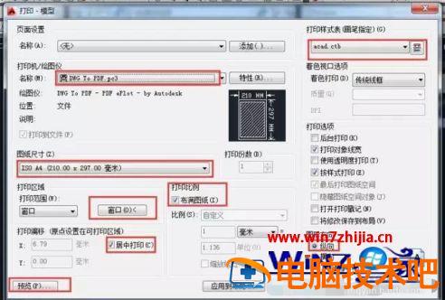 4、如果打印样式选择monochrome.ctb则不论原图中线条是什么颜色打印出来的线条均为为黑色;