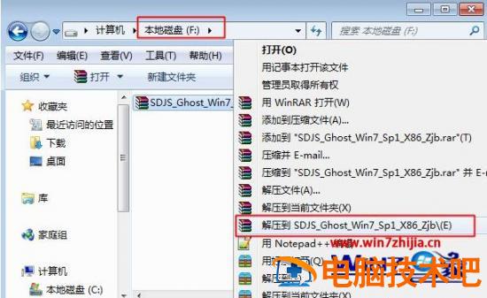1、以ghost系统为例,右键使用WinRAR将iso镜像解压到C盘之外的分区,比如解压到F盘;