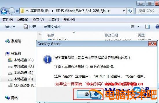7、弹出提示框,提醒将删除C盘数据,并执行还原,点击是,如果有“修复引导的选项”,也要勾选;