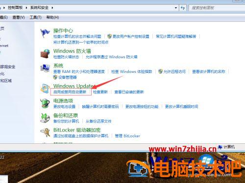 3、在系统和安全对话框中单击”Windows Update”。
