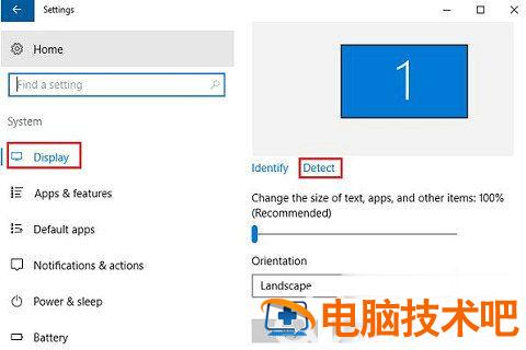 2、进入系统,在显示选项卡的多显示器列下,单击“检测”,此按钮可帮助操作系统检测其他显示器或显示器,特别是如果它们是较旧的型号。 您也可以在这里连接到无线显示器。