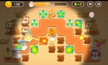 第2波开始有滑板兔,跑的贼快,出来就集火打掉。在最上方金币袋2侧布置2个风扇,基本上就覆盖了所有的路径,火瓶子清建筑物,凑空补刀即可。在出口和萝卜的空位附近,补2个普通瓶子,以防漏了兔子,就稳妥了。