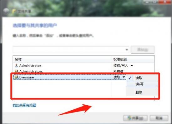 5.添加用户后,我们可以设置权限级访问权限。默认情况下,我们我们可以根据自己的需要设置写入和修改。完成这些设置后,我们点击共享。