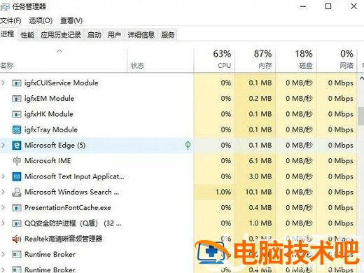 3、接着使用“ctrl+shift+del(.)”打开任务管理器,然后单击开始就可以禁用所有的进程;