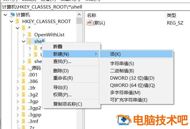 在shell文件夹上面右键,新建->字符串值->Extended(值为空即可),效果如图: