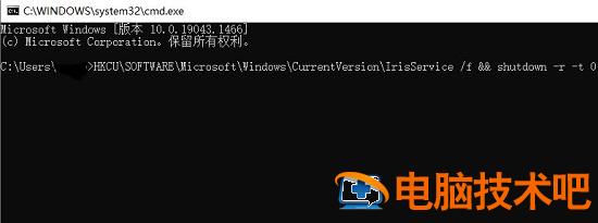 HKCU\SOFTWARE\Microsoft\Windows\CurrentVersion\IrisService /f && shutdown -r -t 0