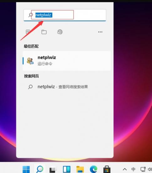1.首先在搜索框中搜索netplwiz”。