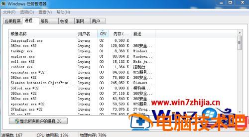 2、在任务栏上鼠标右键,然后选择“任务管理器”后选择“进程”;