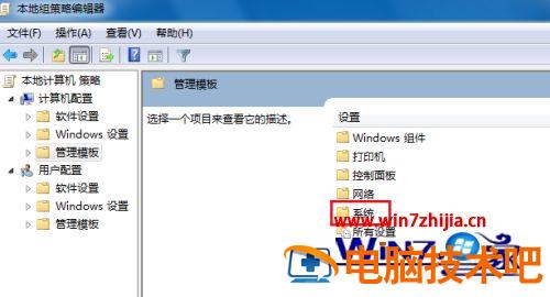 4、打开管理模板后,我们再去双击打开“系统”文件夹;