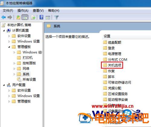 5、然后我们找到“关机选项”并打开;
