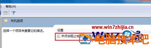 6、打开关机选项后,双击“关闭会阻止或取消关机的应用程序的自动终止功能”;