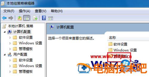 3、双击“计算机配置”后再双击打开“管理模板”;