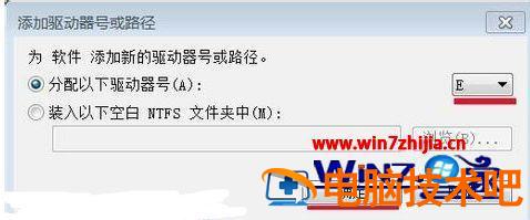 4、这时候我们会看到“分配以下驱动器号”右边就一个小按钮,选择相对应的字母就可以恢复相对应的盘符符号了,比如图片里显示的是E,点击确定后就恢复E盘了,其他的磁盘按照上面3和4的步骤来重复进行就可以