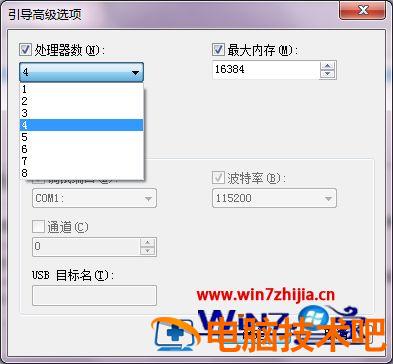 3、因为win7系统默认的处理器个数为1,如果你是双核用户的话就可以设置成2,然后勾选最大内存再点击确定就可以了
