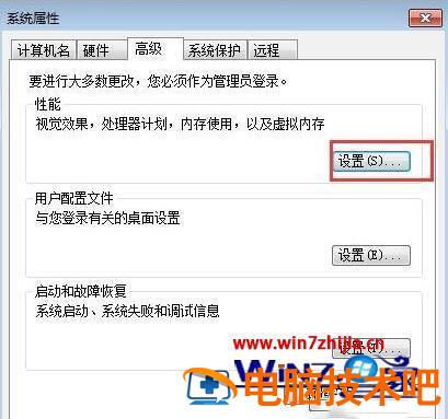 3、然后找到“高级”里面的性能,然后点击性能旁边的“设置”