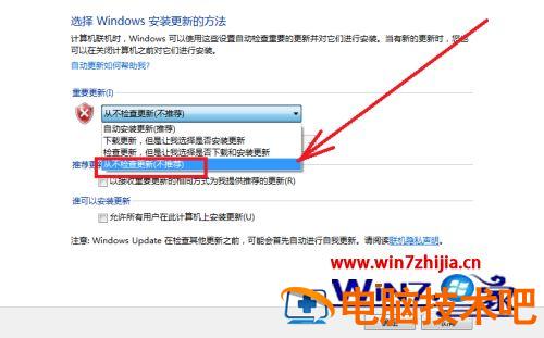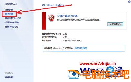 有些时候我们的系统会自动更新,这种时候是非常占据内存的,而且更新后还有可能导致一些新问题,这时候我们可以选择关闭这个功能,步骤为“控制面板”—-“windows Update”—-“更改设置”—-“从不检查更新”,我们只要这种操作即可