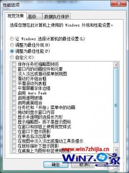 就如同现在很火的动态壁纸一样,动态的壁纸虽然好看,但往往会占据我们手机一定的运行内存,电脑也是同样的道理,我们可以对视觉效果进行一番调整,调整的步骤为“计算机”—-“右键属性”—-“高级系统设置”—-“高级”—–“性能设置”—-“调整为最佳性能”