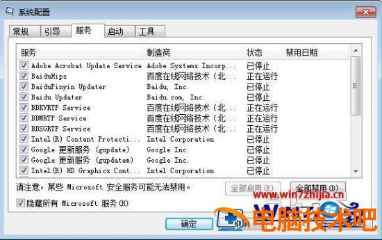 因为win7系统的功能还是很多的,但有些功能我们真的用不上,完全可以将它们给禁掉,我们只需要通过快捷键“win+R”的组合将运行命令打开,然后输入“msconfig”这个命令后点确定,然后点击“服务”,勾选“隐藏所有Microsoft服务”,最后点击“全部禁用”和确定就可以